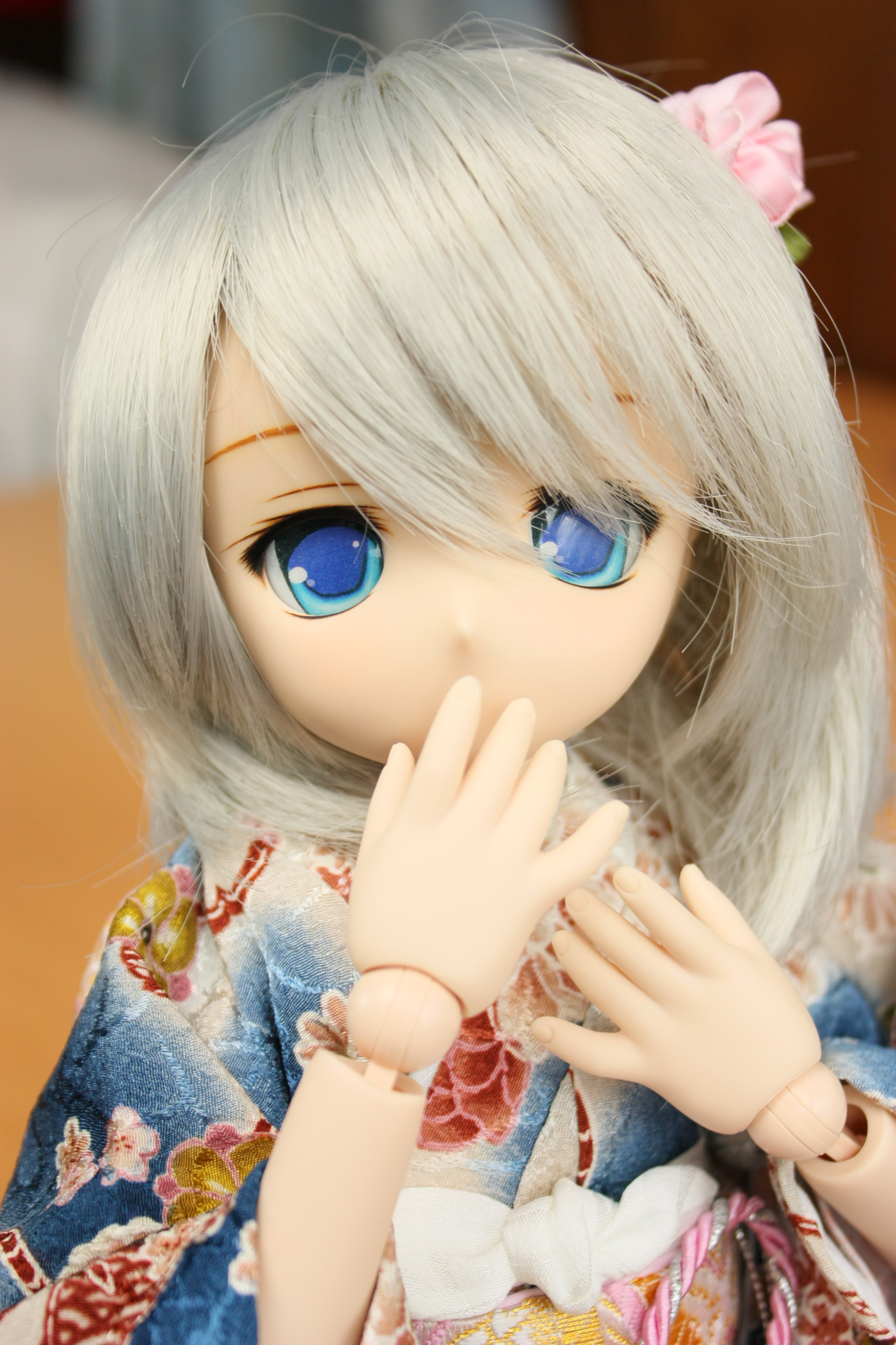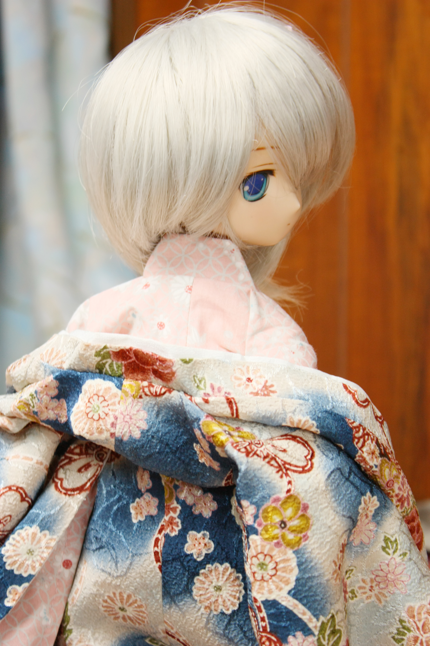 着物の青色と銀髪の髪の色合いも素晴らしいです。