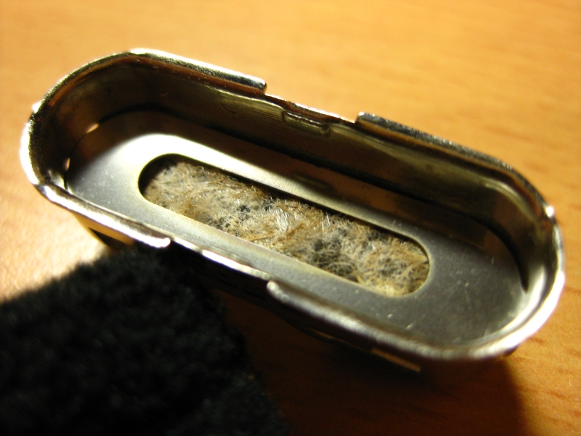 燃料タンクはZIPPOオイルライターと同じく綿が詰められています、ここに燃料のZIPPOオイルを入れます。