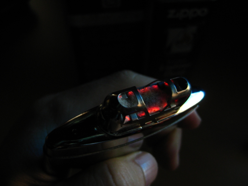 ここを気化したZIPPOオイルが通過し、気化したオイルに含まれているベンジンがプラチナ触媒に接触、触媒作用でベンジンが分解されその際に熱が生じます。