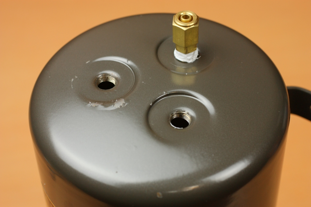 これらのパーツをネジ部にシールをした上で締め込み、エアータンクに取り付けます。