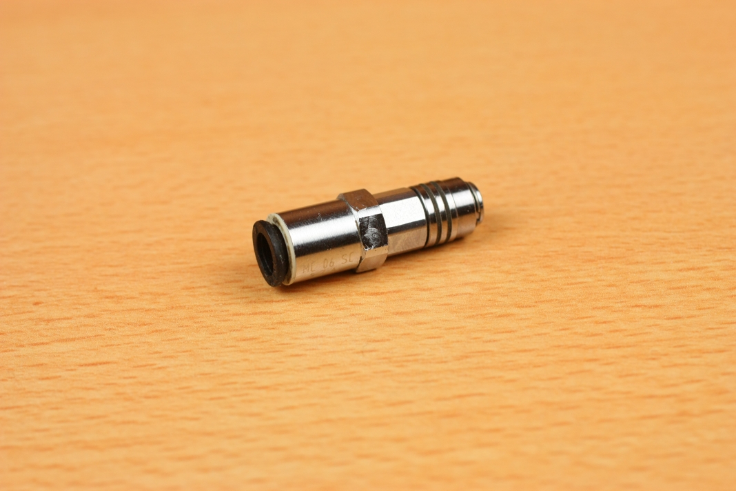 このままだとガスガンには取り付けることができないので、プロテックのバルブとワンタッチで取り付けることができる、マイクロカプラーMC-06SCを使用しますが・・・