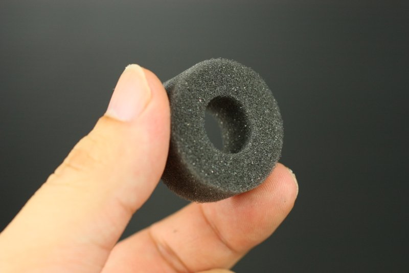 両端のパーツはネジになっており取り外すことができます。開けると中にはお菓子みたいな形状のスポンジが入っていました。
