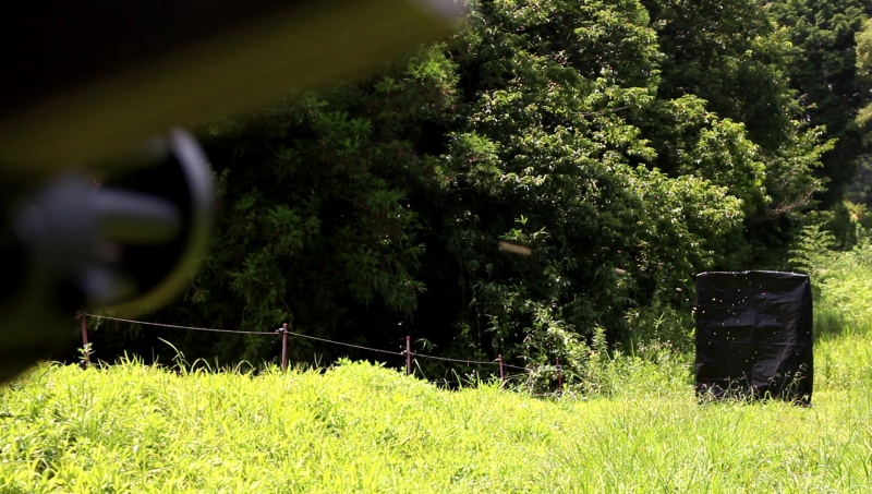 CAWのM134ミニガンは、こう見えてホップアップが搭載され、BB弾の飛距離は本体を傾ければ50m先まで飛んでいきます。もちろん照準などないため、勘で撃ち、撃ちながらBB弾の弾道見つつ調整という撃ち方になります。