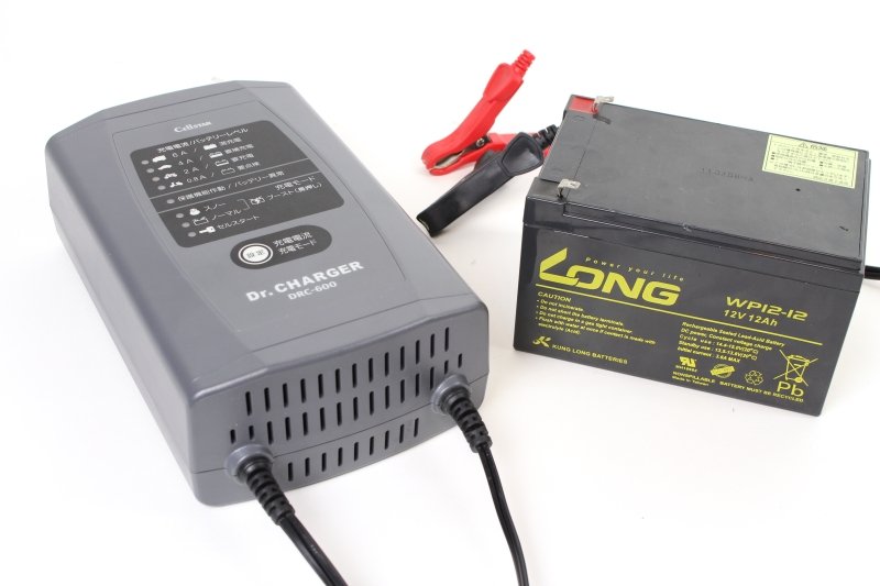 充電器は開放型バッテリーではなく鉛シールドバッテリーのものが必要です。間違って開放型の充電器を使うと電流過多でガスがたまり、容器が膨張、最悪破裂して発生した水素ガスに引火することもあるため鉛シールドバッテリー対応と書いてあるものを用意しなければいけません。