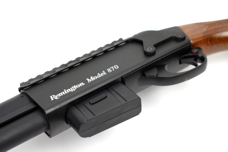 M870には邪道ともいえるボックスマガジンですが、純正のマガジンの約2倍もの容量があるのでゲームの際は有利です。