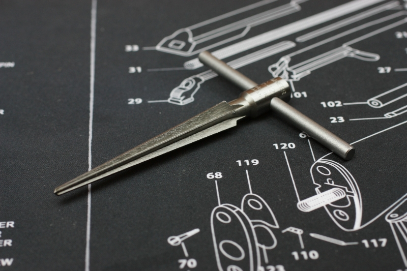 リーマーはカットしたバレルのバリ取り以外にも、マガジンバンパーにあけた穴を拡張するのにも使えるので、外部ソース使いには必須アイテムです。1つもっておくと重宝すると思いますよ。