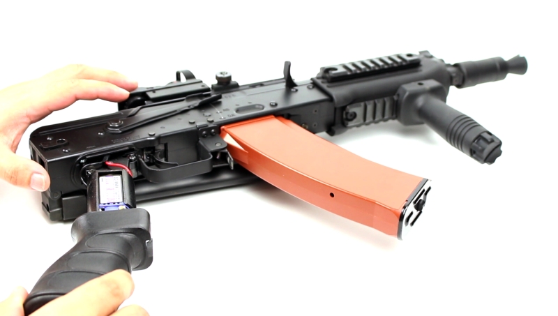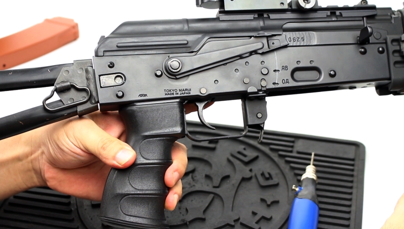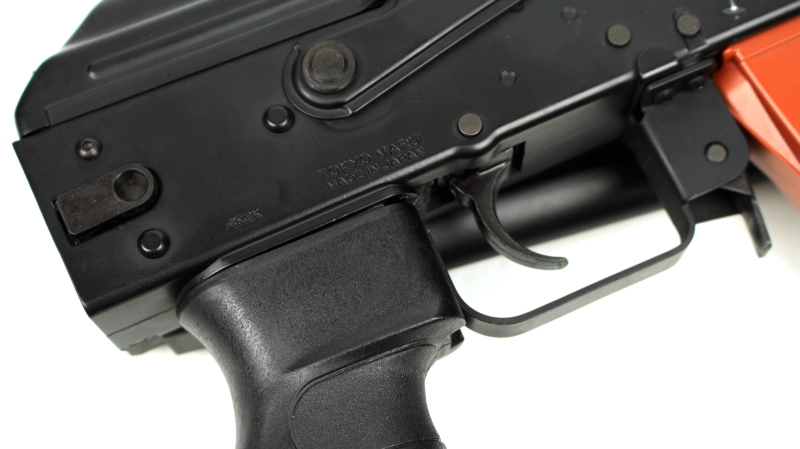 パーツの出来の割に価格はやや高めに感じますが、この握りやすさは素晴らしく、AKS74Uを構えた際に、しっかりと固定して狙うことができます。