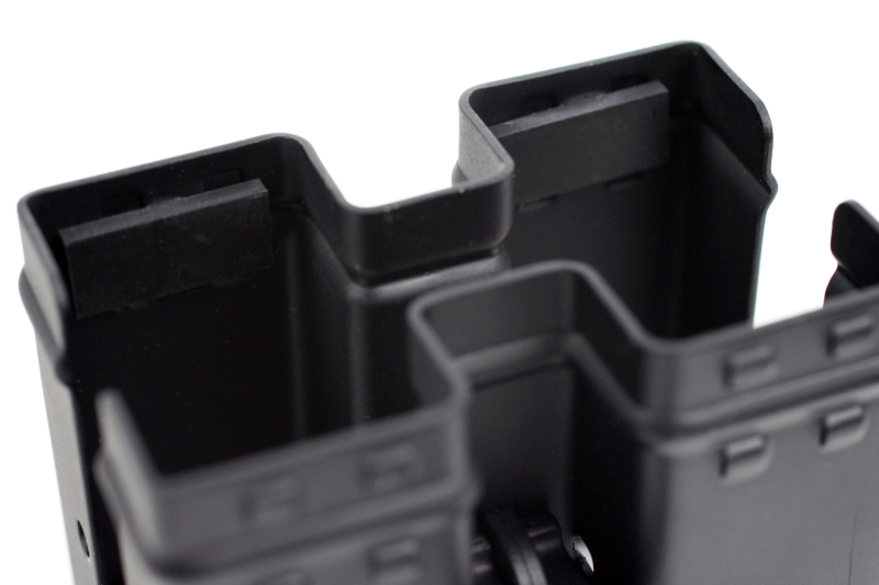マガジンに接触する箇所にはゴムプレートが貼られ、傷の防止だけでなく、マガジンの密着性を高めており、工具不要のためフィールドで付け外しができます。