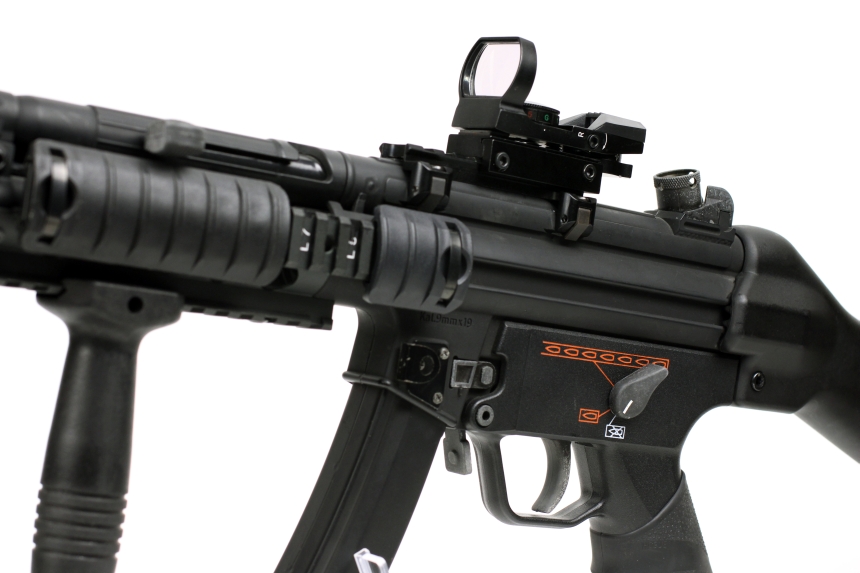 仕方ないねということで、定番のオープンタイプダットはマウント方法が今ひとつだった東京マルイのスタンダード電動ガンMP5A4(カスタム)に取付けることに。