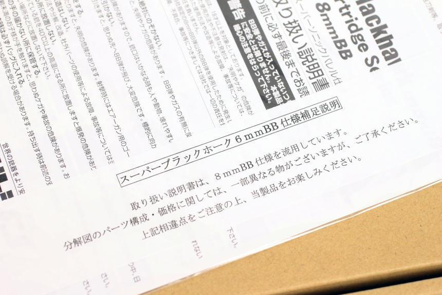最初に箱を開けた際に、誤って8mmモデルのマニュアルを入れたのかと思ったのですが、どうやら注意書きを見るに8mmモデルのマニュアルはあえて流用しているようです。